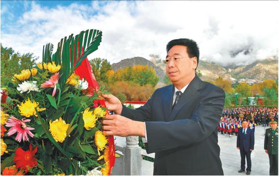 9月30日上午,向烈士敬献花篮仪式在拉萨烈士陵园隆重举行。