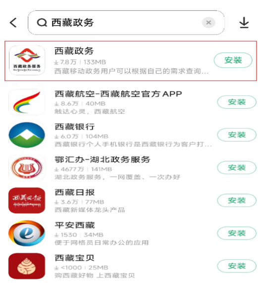 1.通过手机应用商店搜索“西藏政务”并进行下载,如已下载需更新到最新版本。