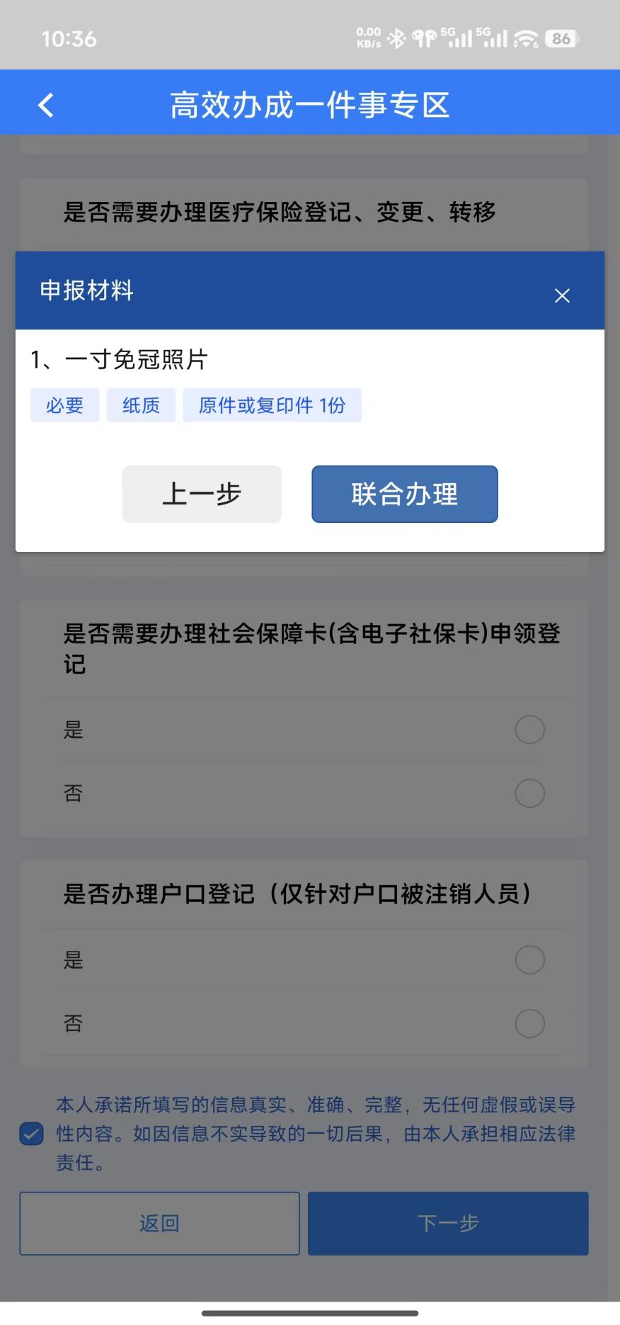 4.根据系统提示,准备好电子版材料,点击联合办理。